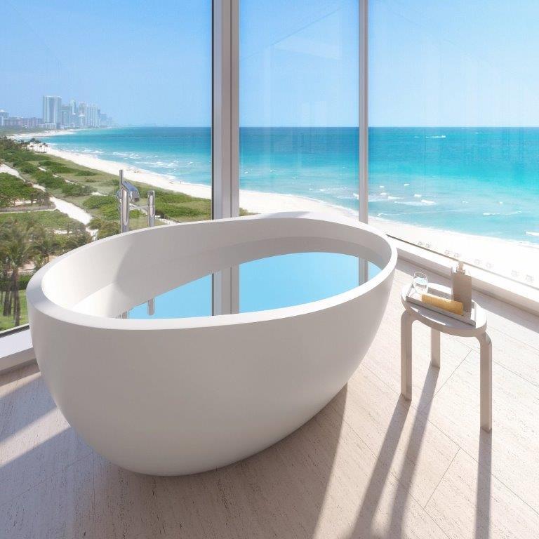 Both the Four Seasons Hotel and Private Residences were designed by Pritzker Prize-winning architect Richard Meier, who is perhaps most famous for his Getty Center in Los Angeles, among hundreds of important projects he has realized over his long career. Billed as a prestigious residential address with all the amenities and privileges of living at a grand hotel, the private residences range from 1,800 square feet to 7,800 square feet in size. With luxuriously appointed interiors by Lee Mindel, these exclusive homes feature private elevator entries, floor-to-ceiling impact-resistant walls of glass, and up to twenty-foot-high ceilings. With fifty-one unique floor plans to choose from, the residences offer magnificent and expansive living spaces and unobstructed views of the Atlantic Ocean and Biscayne Bay. Meanwhile, hotel residences feature custom Joseph Dirand-designed furniture, making them absolute show stoppers. Owners of these exclusive apartments have the option to participate in the Four Seasons hotel program and earn income on their investments when not personally using their units.